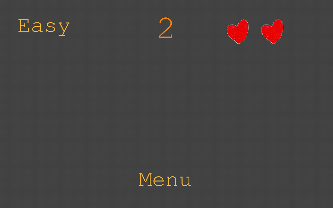 Simple casual game. Your goal is to crash with the orange character into the other one. But to make things a bit harder you need to be on the left side of the blue character at the time of the collision. Every time you crash from the left you get a point. Take care, if you crash from the wrong side of the character, you lose a life.