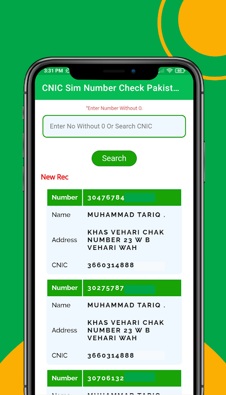 CNIC Information means the record of Pakistani Identity Card Holder. So this app helps to verify your CNIC details entered in NADRA record. CNIC Sim Number Check Pakistan provides detailed information of any Pakistani CNIC Number and all Registered Mobile Numbers on CNIC . This information includes Name, Address and all CNIC Sim Number of the CNIC holder.
