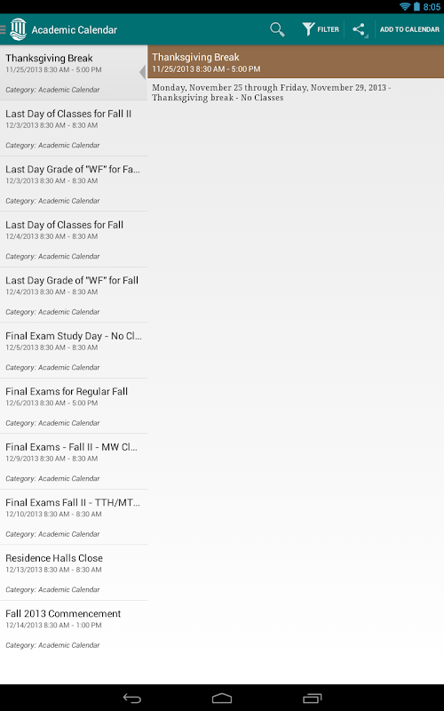 • Courses—Manage your courses on the go by accessing your course schedule and links to helpful resources.