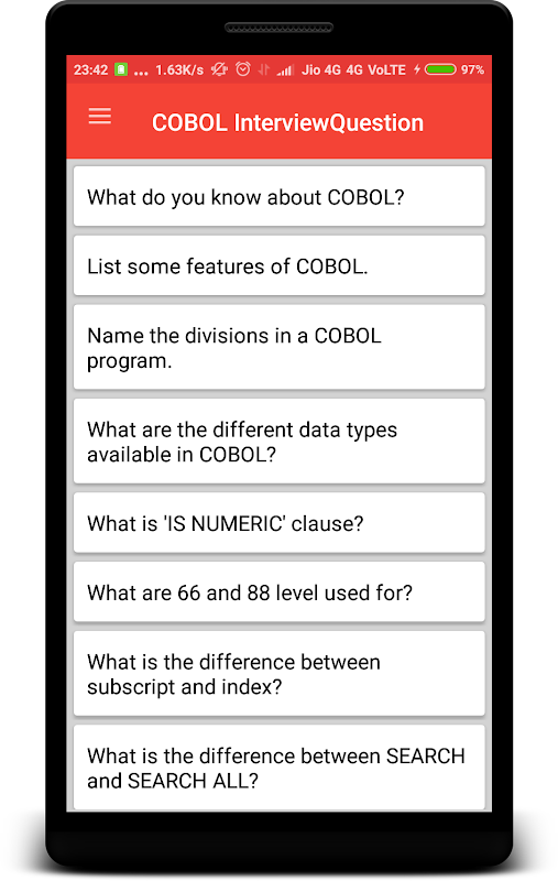 这个应用程序包含适当的回答面试问的问题COBOL。