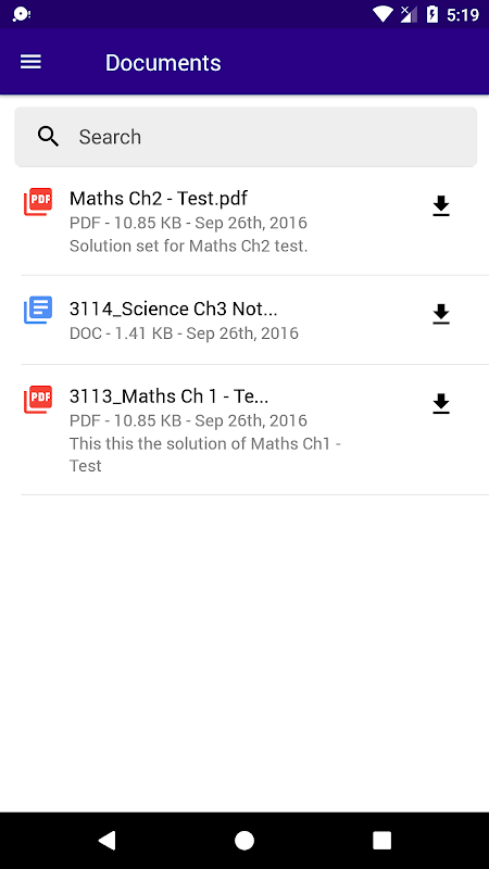 * Download test related answer papers, notes or any shared document.