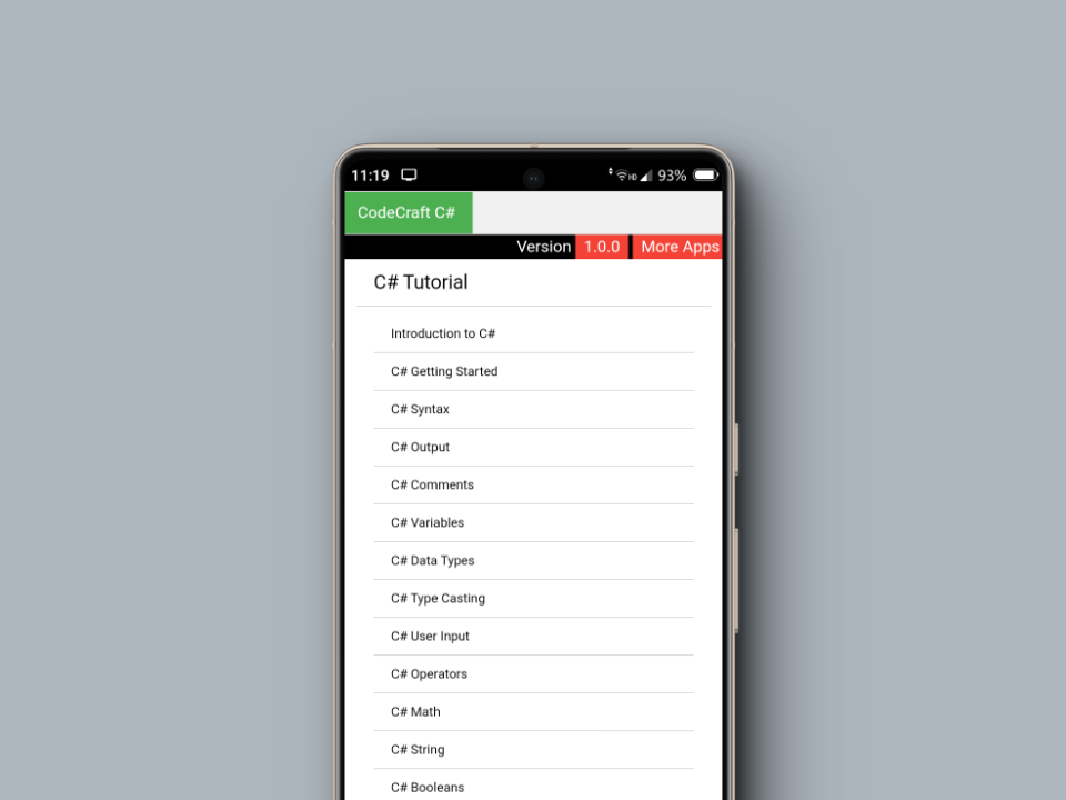 欢迎来到“CodeCraft C#”,在这里您将开始掌握 C# 编程语言的旅程。无论您是编码新手还是希望提高自己的技能,此应用程序都旨在成为您成为熟练 C# 开发人员的首选伴侣。