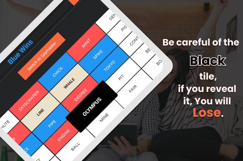 在代号中,两个团队根据从间谍主管那里收到的指示,竞争从屏幕上的面板上解码其团队的代码字。间谍主管会提供一个单词提示,该提示指向板上的多个代码字。各自的队友或间谍,在避免对方的密码的同时,尝试破译这些词语。如果选中,还有一个黑字会导致团队立即失败。因此,间谍主管必须非常谨慎地进行单词联想,以便其团队能够找到答案。