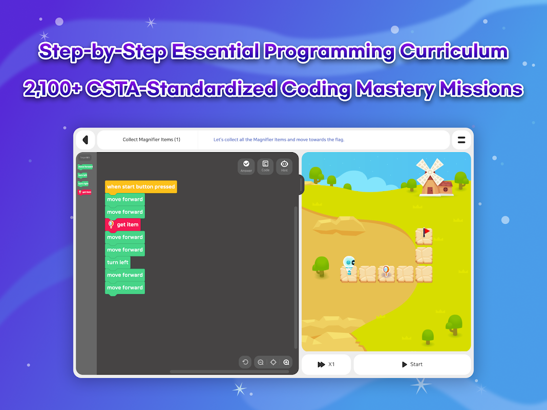 - 全球课程标准:我们所有的学习路径都基于严格的 CSTA(计算机科学教师协会)标准,确保孩子的学习具有国际竞争力,并为他们未来的学术挑战做好准备。