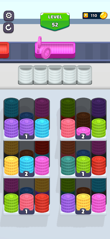 走进充满彩色硬币的益智世界!Coin Jam 提供了一款令人上瘾且令人愉快的游戏,可以测试您的战略思维能力。点击硬币,将它们发送到插槽,并填满盒子以清除所有硬币。每次填满一个盒子时,都会有一种新的颜色在等着您。您的目标是清除所有架子并完成游戏!