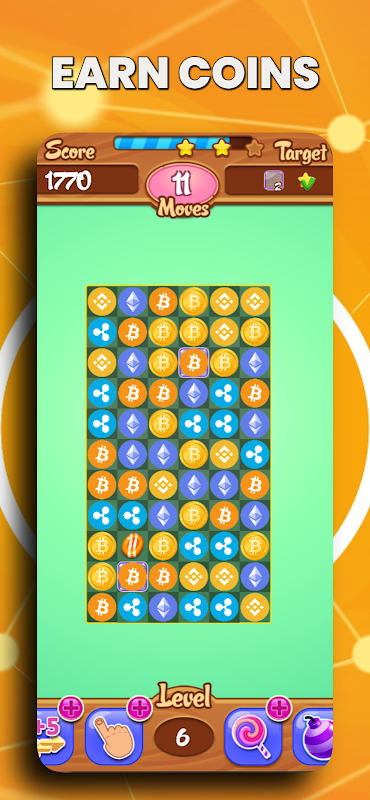 通过在应用程序中玩匹配游戏来赚取比特币。轻松开始通过糖果硬币制作比特币。