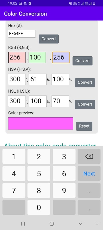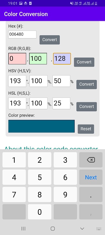 最简单的颜色转换应用程序之一就在这里。此颜色转换器应用程序根据输入返回正确的颜色单位。除此之外,还可以在颜色预览部分查看创建的颜色。