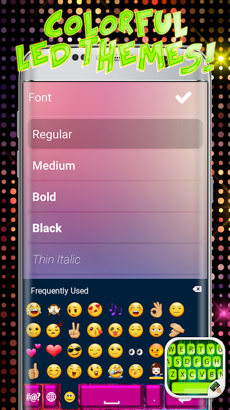🔷 多彩LED键盘 🔷 刚刚到市场!享受我们可爱的“彩虹色键盘”应用程序免费,探索发短信与完全新的字母样式。使用丰富多彩的“霓虹灯键盘主题”和发光效果增强您的打字体验。看看它将如何使你的手机看起来,但首先完全免费下载!