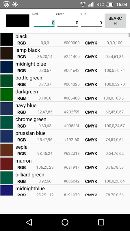 此APPLI将显示的颜色信息的列表。