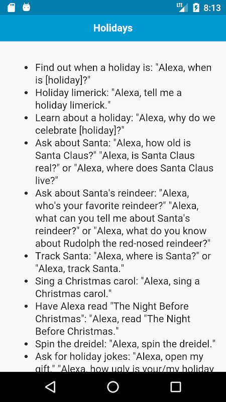 From this app, you will get full list of commands for your Echo Plus. All are organised by category. So you can find easily any command you need.