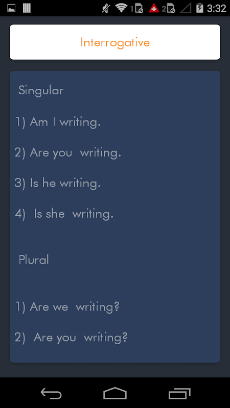 该应用程序提供了在所有12个时态在上述类型的标准例句。
