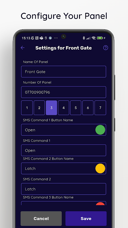 使用智能手机上的这些大按钮向您的入口系统发送 SMS 命令以打开您的入口。