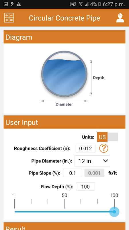 Compare Flow app uses Manning Formula, the most widely accepted formula for evaluating the hydraulic capacity of non-pressure sewers.