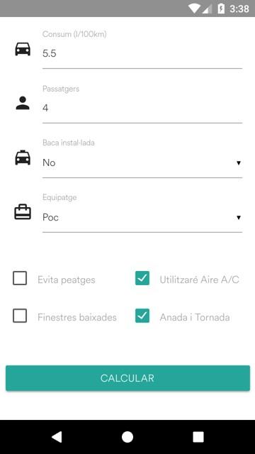 Es demanen una sèrie de paràmetres (orígen, destí, consum del vehicle, si porta baca, persones, evitar peatges...) i calcula la ruta i els seus costos.