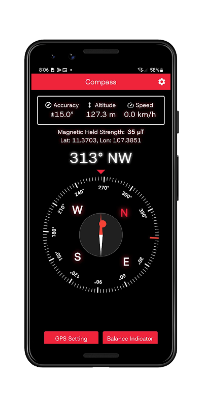 带有平衡指示器和磁场可视化器的指南针应用程序,可提高精确度!