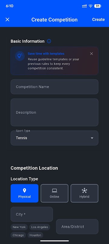 轻松创建和管理赛事。追踪比分并参与全球竞赛。