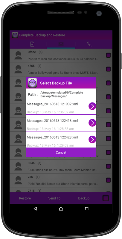 # you can restore your data from the specific file back to your device.