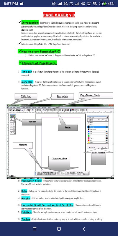 In this app you will learn ms word, ms excel, ms powerpoint, ms access, html, tally, photoshop, pagemaker, coral draw, c++ and lot more in easy and simple language.