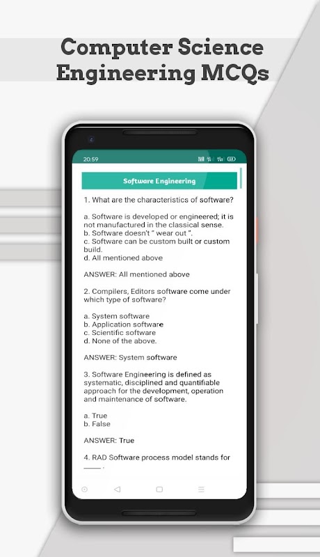 This application contains multiple choice questions of all important topics of Computer Science Engineering Chapterwise. This is very helpful for preparation of competition exam and College study.