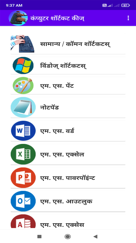 电脑键盘快捷键 提供英语,马拉地语和印地文语言!