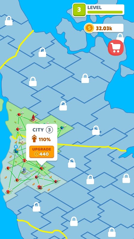 Connect Map 是一款适合所有人的新型超休闲游戏。在这个游戏中,您需要控制各种资源并将其连接到地图上的所有城市。