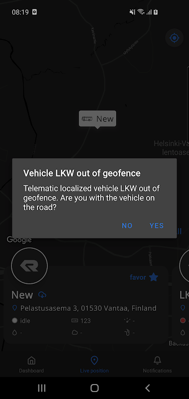 Geofencing and live position