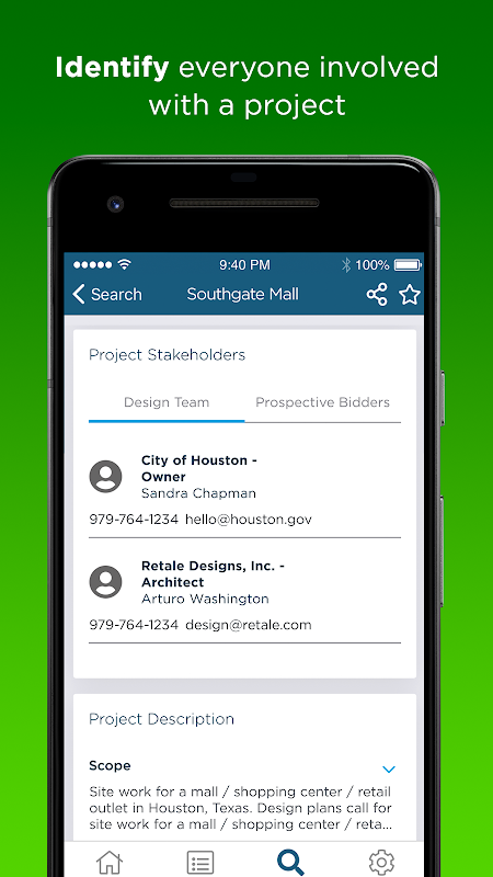 - Connect to everyone involved in a project from design team to interested bidders