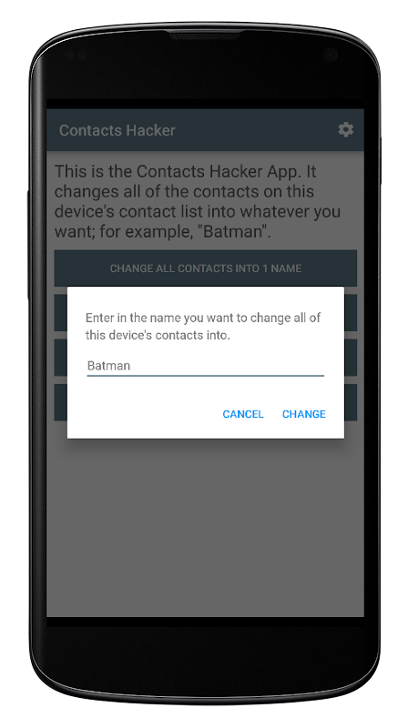这个程序的初衷,你可以将所有设备的联系人的重命名为一个名称。无论是你最喜欢的梅梅与“Harambe”或通用名称,比如“史蒂夫”,应用程序将事情办成,一切应成为一体。