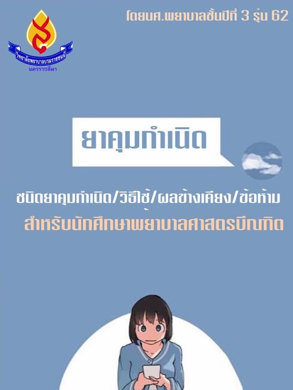 Contraceptives ยาคุมกำเนิด ชนิดยาคุมกำเนิด /วิธีใช้/ผลข้างเคียง/ข้อห้าม สำหรับนักศึกษาพยาบาลศาสตรบัณฑิต