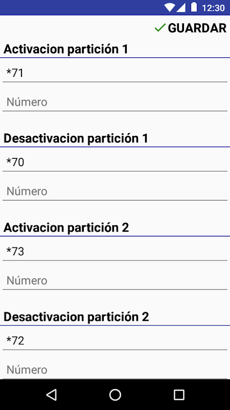 Numero: Número de teléfono del dispositivo (Si se deja en blanco se usará el número del dispositivo seleccionado en el desplegable)