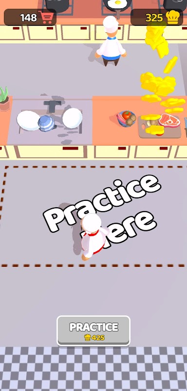 使用烹饪帽练习切菜、清洗和烹饪技巧,并提升烹饪车等级。