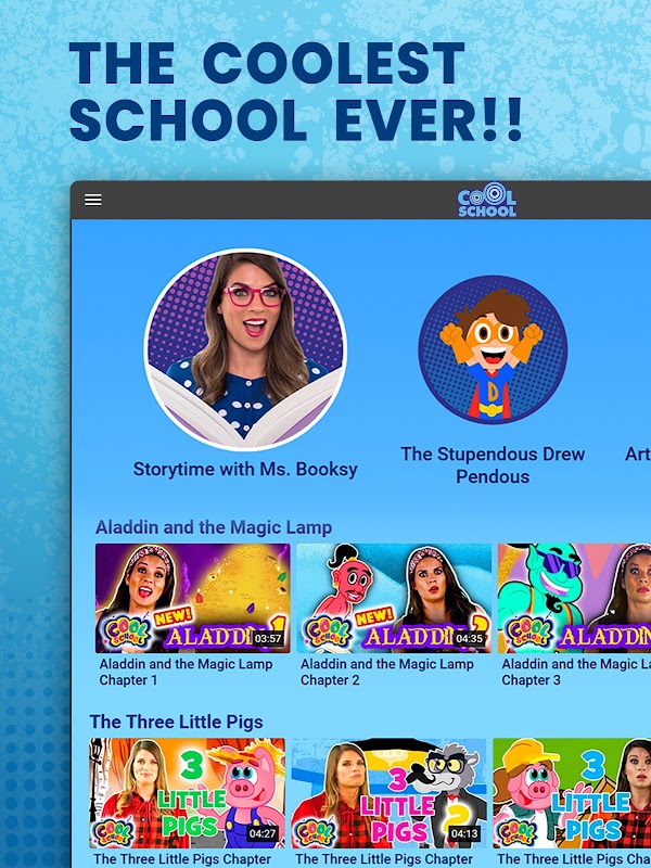 Cool School 是一个勇敢的超级英雄、有趣的讲故事的人、古怪的美术老师和卑鄙的恶棍联合起来学习、欢笑、玩耍……和战斗(只是有时)的地方!无论您是与 Drew Pendous 一起进行激动人心的冒险,与 Booksy 女士一起观看栩栩如生的故事,还是与 Crafty Carol 一起制作超级有趣的手工艺品,Cool School 的一天都不会无聊!我们的课程无处不在,您的想象力无处不在。 Cool School 是每个孩子梦想的学校,因为它是有史以来最酷的学校!!