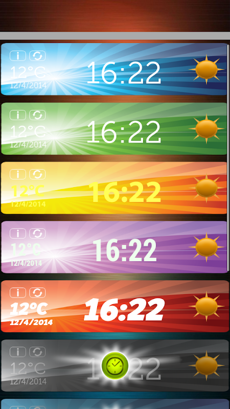 你可以改变,只要你想这个简单的天气小部件的外观。有一个广泛的在您的处置美丽的小部件皮肤。就拿一个符合你要跟壁纸或动态壁纸,美化您的主屏幕,你喜欢的方式。如果下雨,你觉得苦不堪言,添加一些活泼的色彩,以你的时钟和天气小工具,你会立刻感觉好多了。