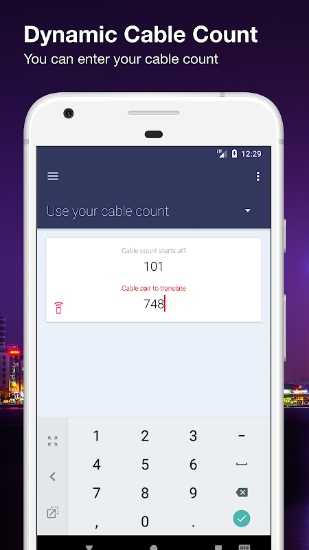 无论你是经验或新的电缆剪接所有电话技术人员应该有这个工具。电话线或双绞线电缆有多种尺寸,但应用程序可以让你进入电缆数量,使得其更具活力,比类似的应用程序准确。举例来说,并不是所有的电缆计数开始在1号,这样你就可以在任何数字开始计数。