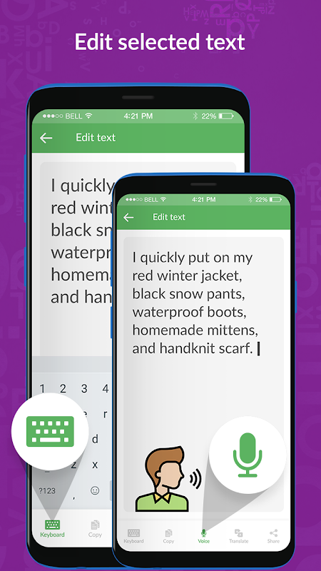 这个应用程序可以复制和粘贴屏幕文本,你也可以编辑和翻译它。