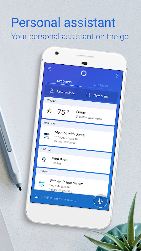 Microsoft Cortana is your free smart digital assistant. She can support you by giving you reminders, keeping your notes and lists, taking care of tasks and helping manage your calendar.