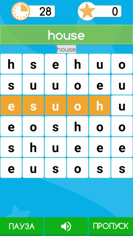 На экране высвечивается слово которое необходимо найти в таблице. Чем быстрее вы это слово найдёте тем больше очков получите.