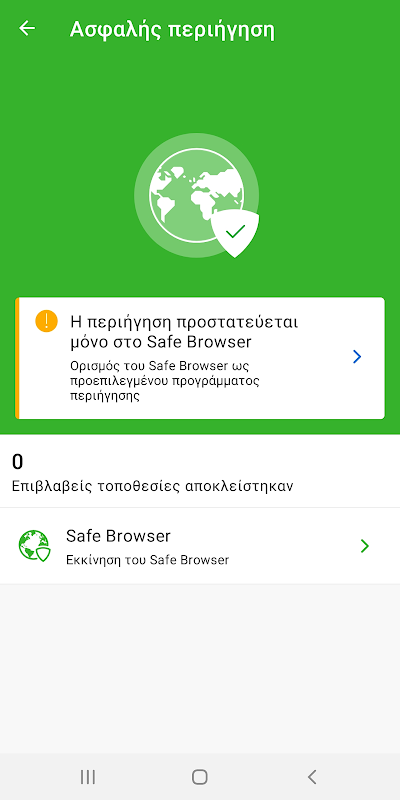 仅当您使用安全浏览器浏览 Internet 时,安全浏览才有效。为了方便您将安全浏览器设置为默认浏览器,我们将其安装为启动器中的附加图标。这也有助于孩子更直观地启动安全浏览器。