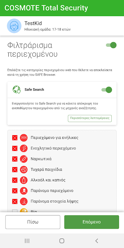 COSMOTE 始终采用严格的安全措施来保护您个人数据的机密性和完整性。在此处查看完整的隐私政策:https://www.cosmote.gr/pdf/TermsConditions/Data_Privacy_Notice_COSMOTE_Total_Security.pdf