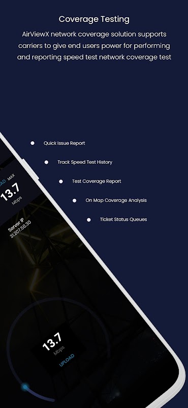 AirViewX Coverage is the network testing solution that empowers users to perform quick network testing and report network issues in real-time reporting to network service providers for making informed decisions for resolving user issues.