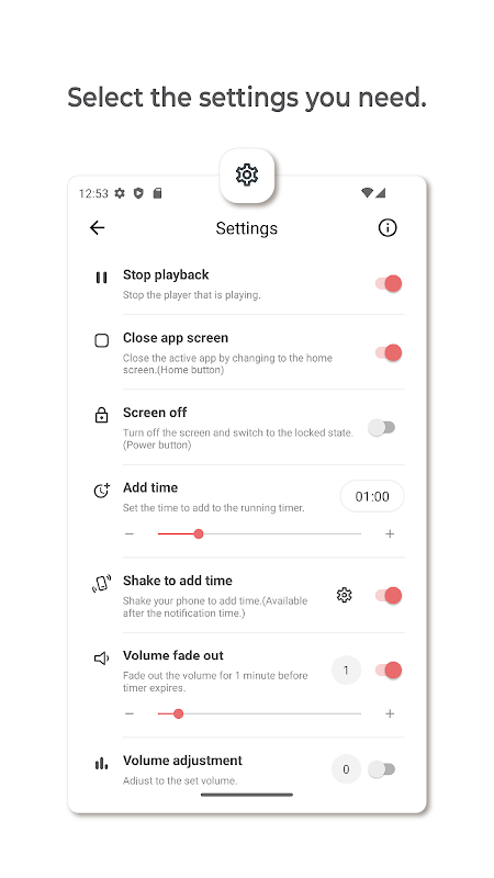 - 摇一摇即可增加时间, 浮动按钮 ➔ 设置-添加时间。