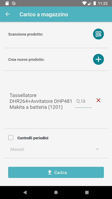 通过QR码选择产品或在注册表中输入新产品,可以通过向产品提供更多详细信息来增加仓库中的库存。