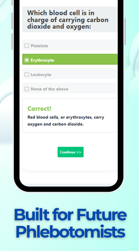 涵盖您需要了解的所有内容——静脉穿刺技术、感染控制、标本处理、安全规程、解剖学和患者护理。您可以选择快速主题测验,或参加模拟真实考试体验的完整模拟考试。追踪您的进度,获得即时反馈,并使用专为您打造的智能工具保持学习动力。