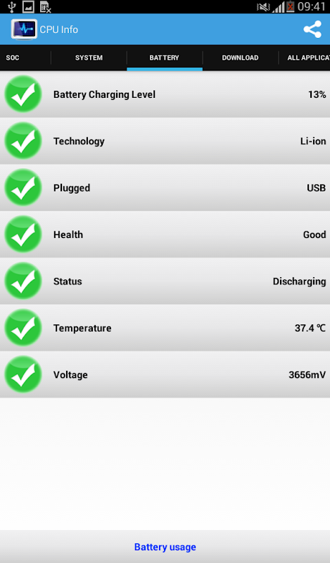 ex: CPU speed, cpu name, cpu, hardware, total ram, ram available, Battery usage, phone number...