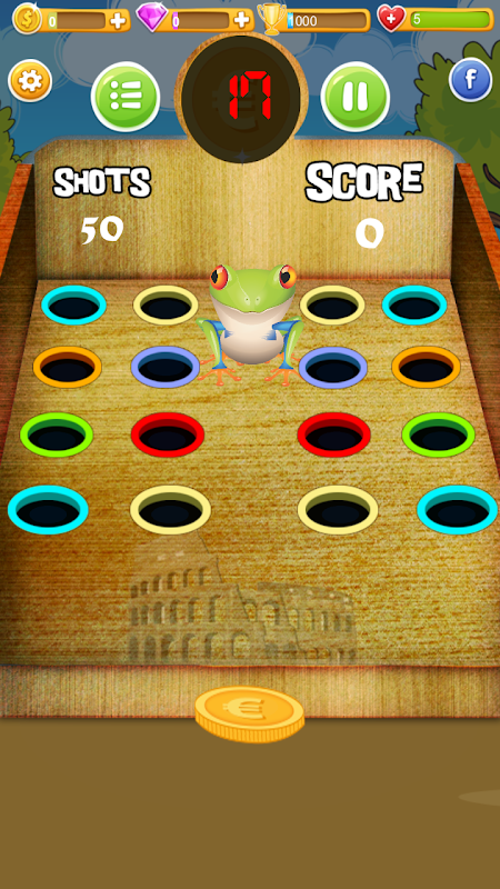 提示:避免击中疯狂的青蛙……他饿了,所以会吃掉你的硬币,你会丢掉5发子弹。