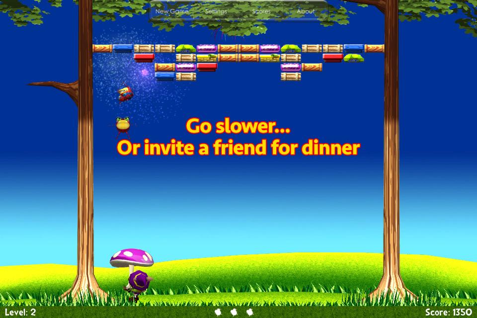 游戏的目标就是打破所有的砖块,或是让蟾蜍吃掉蜘蛛。