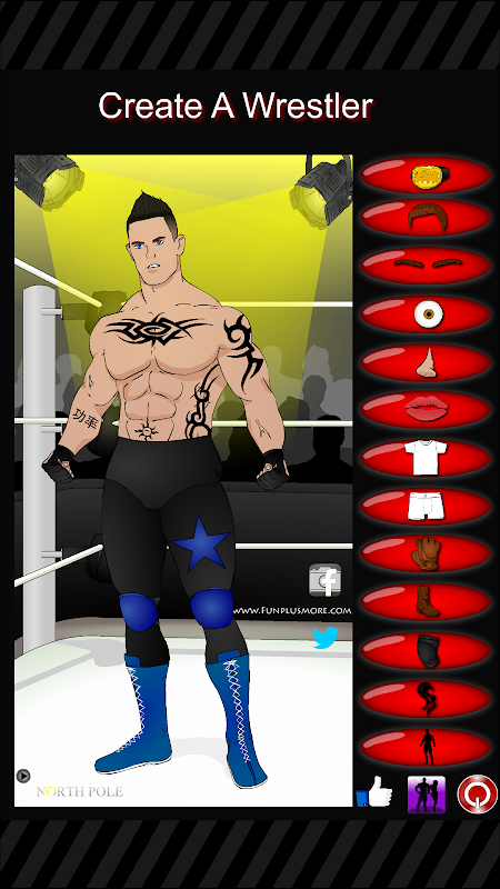勇于创新,用你的想象力,拿出你自己的创作。您可以选择各种配件来创建原始的战斗机。使用不同的面具,腰带和战斗手套。通过改变自己的肤色,头发和眼睛更加个性化你的性格。创建新的冠军的超级明星,并与世界与你的摔跤手的快照/图片分享你的创作。