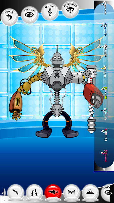 选择模型,你最喜欢的和你的装扮比赛就可以开始。使用一个强大的躯干,然后把脑袋在身上。通过查找所有作品修复的机器人。选择功能强大的胳膊和强壮的双腿。选择一个合适的武器。你将成为一个著名的机器人制造商和机器人的创造者。这是一个有趣的装扮游戏的男孩。您可以选择和其他机器人部件,如电池,灯,枪,剑等,建立尽可能多的怪物,只要你想,有多种组合。创建一个机器人警察,军人,钢铁机器人,太空基地机器人,甚至机器人僵尸。用你的想象力,并有很多的乐趣。这是新的装扮游戏的女孩,男孩,和青少年谁是疯狂的超级英雄,并为大家谁喜欢时尚的设计,并希望成为英雄最好的设计师。做好准备,以对抗坏人战斗机器人的超级英雄。让真正有趣的冒险与你的机器人。创建你的机器人是创意和乐趣的应用程序,可让您和构建古怪而有趣的机器人,然后你可以与你的朋友分享。用你的创造力的部分拼凑机器人的一部分。