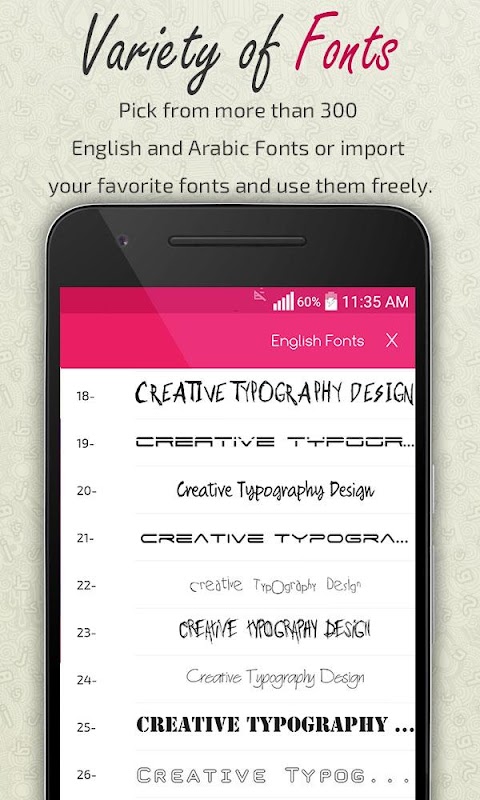 ---> 从 1000 多种英语/阿拉伯语字体或任何导入的字体中进行选择。