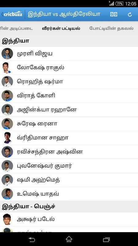 Cricbuzz是Google Play上排名第一的Cricket应用程序,现在可以在印地语,泰米尔语,卡纳达语,泰卢固语,马拉地语和孟加拉语中使用Cricket。该应用程序提供所有国际板球比赛(测试,ODI和T20),印度超级联赛(IPL),ICC板球世界杯,欧洲冠军联赛T20,Big Bash和来自世界各地的其他主要国内比赛的逐球报道。地区语言。